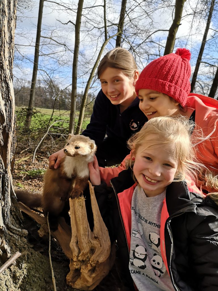 Förster Andreas Janson erzählte den Kindern Spannendes über die Tiere des Waldes und präsentierte Fuchs, Dachs, Eichelhäher und Co. in Lebensgröße. Außerdem nahmen die Kinder die Gebisse einiger Tiere unter die Lupe um herauszufinden, was diese fressen.