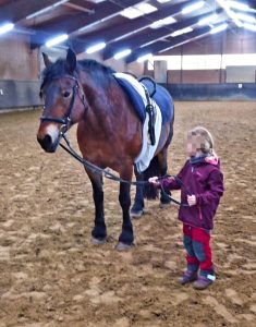 Die Arbeit mit dem Pferd Maja fördert das zunehmende Vertrauen der Kinder in sich selbst. Die Wahrnehmungsverarbeitung – besonders die erforderliche Muskelanspannung und Muskelentspannung- wird spielerisch im Umgang mit dem Pferd und auf dem Pferd gefördert. Ein guter Beitrag zur Entwicklung einer starken Persönlichkeit!