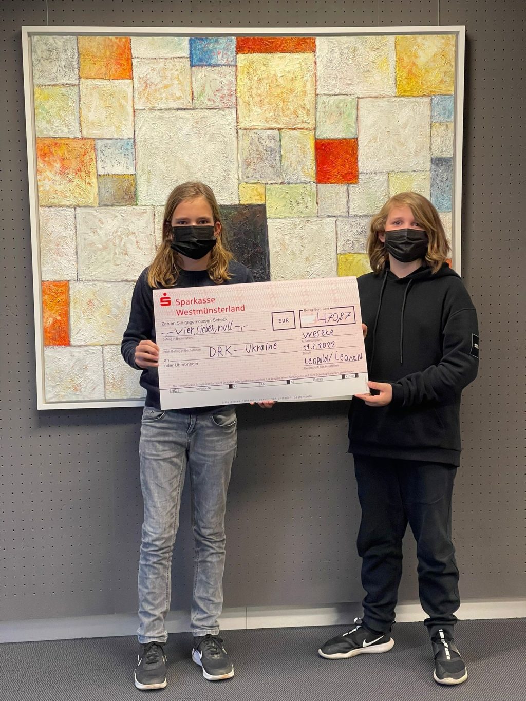 Die Waffelaktion von Leonard und Leopold aus der Klasse 6 hat sich gestern richtig gelohnt. Die Jungs haben heute 470,87 EUR an die DRK-Ukrainehilfe überwiesen. Vielen Dank an alle Spender!!! Toll Jungs, was ihr zwei da am Sonntag geschafft habt.